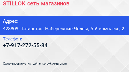 STILLOK, сеть магазинов по адресу 423809, Татарстан, Набережные Челны, 5-й комплекс, 2 в дальнейшем Организация, размещена в следующих категориях: