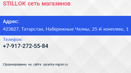 STILLOK, сеть магазинов по адресу 423827, Татарстан, Набережные Челны, 25-й комплекс, 1 в дальнейшем Организация, размещена в следующих категориях: