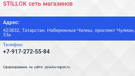 STILLOK, сеть магазинов по адресу 423832, Татарстан, Набережные Челны, проспект Чулман, 53а в дальнейшем Организация, размещена в следующих категориях: