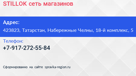 STILLOK, сеть магазинов по адресу 423823, Татарстан, Набережные Челны, 18-й комплекс, 5 в дальнейшем Организация, размещена в следующих категориях: