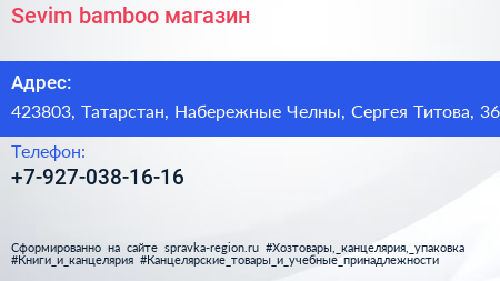 Sevim bamboo, магазин по адресу 423803, Татарстан, Набережные Челны, Сергея Титова, 36 в дальнейшем Организация, размещена в следующих категориях: