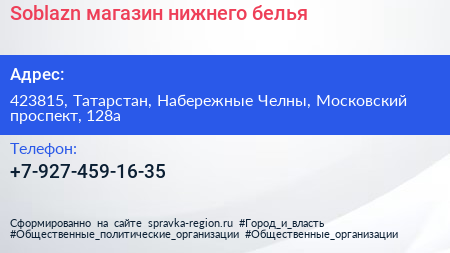 Soblazn, магазин нижнего белья по адресу 423815, Татарстан, Набережные Челны, Московский проспект, 128а в дальнейшем Организация, размещена в следующих категориях: