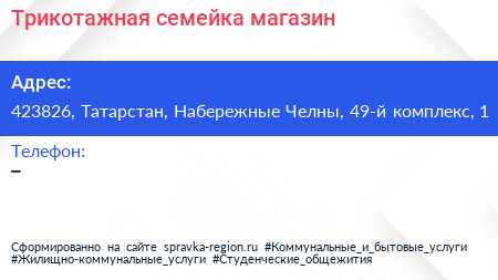 Трикотажная семейка, магазин по адресу 423826, Татарстан, Набережные Челны, 49-й комплекс, 1 в дальнейшем Организация, размещена в следующих категориях:
