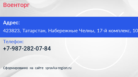 Военторг по адресу 423823, Татарстан, Набережные Челны, 17-й комплекс, 10 в дальнейшем Организация, размещена в следующих категориях: