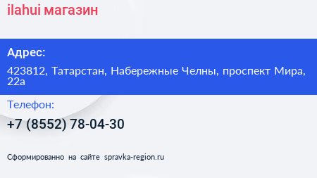ilahui, магазин по адресу 423812, Татарстан, Набережные Челны, проспект Мира, 22а в дальнейшем Организация, размещена в следующих категориях: