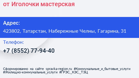от Иголочки, мастерская по адресу 423802, Татарстан, Набережные Челны, Гагарина, 31 в дальнейшем Организация, размещена в следующих категориях:
