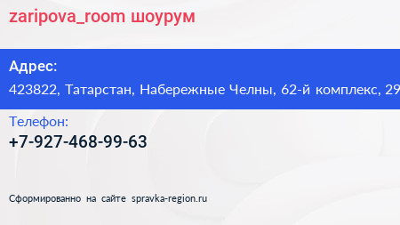 zaripova_room, шоурум по адресу 423822, Татарстан, Набережные Челны, 62-й комплекс, 29 в дальнейшем Организация, размещена в следующих категориях: