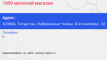 1000 мелочей, магазин по адресу 423800, Татарстан, Набережные Челны, 8-й комплекс, 32 в дальнейшем Организация, размещена в следующих категориях: