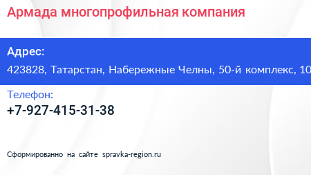 Армада, многопрофильная компания по адресу 423828, Татарстан, Набережные Челны, 50-й комплекс, 10 в дальнейшем Организация, размещена в следующих категориях: