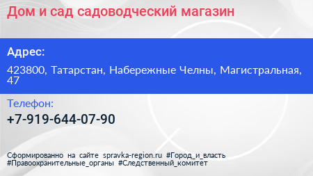 Дом и сад, садоводческий магазин по адресу 423800, Татарстан, Набережные Челны, Магистральная, 47 в дальнейшем Организация, размещена в следующих категориях: