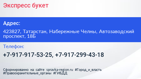 Экспресс-букет по адресу 423827, Татарстан, Набережные Челны, Автозаводский проспект, 18Б в дальнейшем Организация, размещена в следующих категориях: