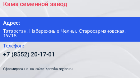 Кама, семенной завод по адресу Татарстан, Набережные Челны, Старосармановская, 19/18 в дальнейшем Организация, размещена в следующих категориях: