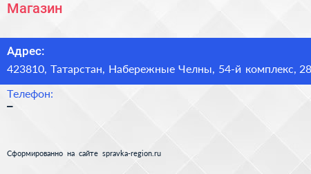 Магазин по адресу 423810, Татарстан, Набережные Челны, 54-й комплекс, 28 в дальнейшем Организация, размещена в следующих категориях: