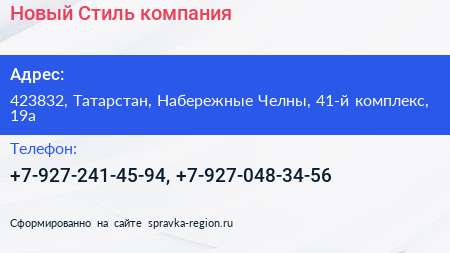 Новый Стиль, компания по адресу 423832, Татарстан, Набережные Челны, 41-й комплекс, 19а в дальнейшем Организация, размещена в следующих категориях: