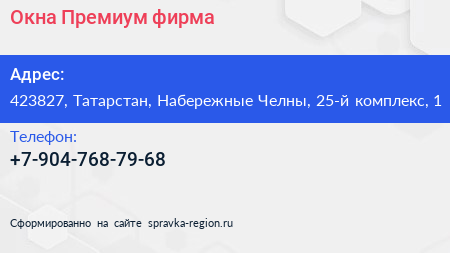 Окна Премиум, фирма по адресу 423827, Татарстан, Набережные Челны, 25-й комплекс, 1 в дальнейшем Организация, размещена в следующих категориях: