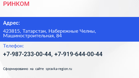 РИНКОМ по адресу 423815, Татарстан, Набережные Челны, Машиностроительная, 84 в дальнейшем Организация, размещена в следующих категориях: