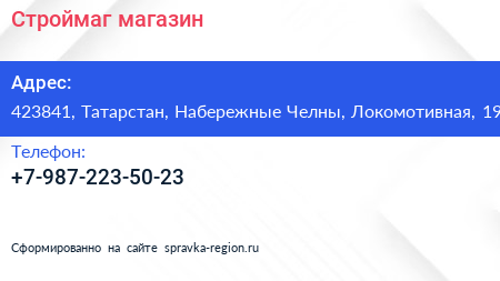 Строймаг, магазин по адресу 423841, Татарстан, Набережные Челны, Локомотивная, 19 в дальнейшем Организация, размещена в следующих категориях: