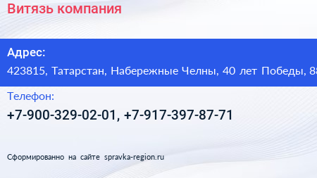 Витязь, компания по адресу 423815, Татарстан, Набережные Челны, 40 лет Победы, 88 в дальнейшем Организация, размещена в следующих категориях: