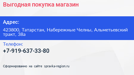 Выгодная покупка, магазин по адресу 423800, Татарстан, Набережные Челны, Альметьевский тракт, 38а в дальнейшем Организация, размещена в следующих категориях: