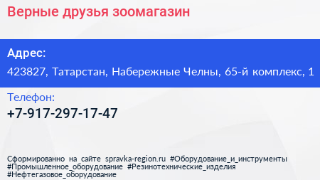 Верные друзья, зоомагазин по адресу 423827, Татарстан, Набережные Челны, 65-й комплекс, 1 в дальнейшем Организация, размещена в следующих категориях: