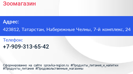 Зоомагазин по адресу 423812, Татарстан, Набережные Челны, 7-й комплекс, 24 в дальнейшем Организация, размещена в следующих категориях:
