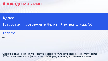 Авокадо, магазин по адресу Татарстан, Набережные Челны, Ленина улица, 36 в дальнейшем Организация, размещена в следующих категориях: