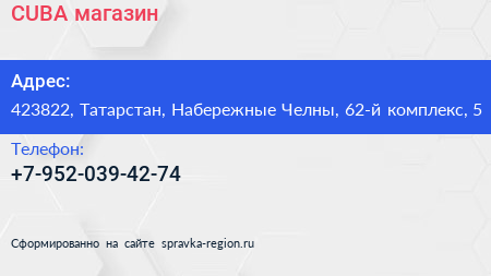 CUBA, магазин по адресу 423822, Татарстан, Набережные Челны, 62-й комплекс, 5 в дальнейшем Организация, размещена в следующих категориях: