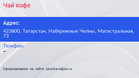 Чай & кофе по адресу 423800, Татарстан, Набережные Челны, Магистральная, 73 в дальнейшем Организация, размещена в следующих категориях: