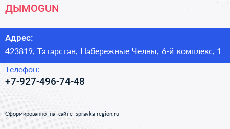 ДЫМОGUN по адресу 423819, Татарстан, Набережные Челны, 6-й комплекс, 1 в дальнейшем Организация, размещена в следующих категориях: