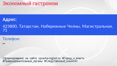 Экономный, гастроном по адресу 423800, Татарстан, Набережные Челны, Магистральная, 71 в дальнейшем Организация, размещена в следующих категориях: