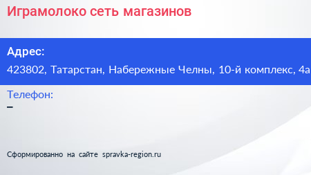 Играмолоко, сеть магазинов по адресу 423802, Татарстан, Набережные Челны, 10-й комплекс, 4а в дальнейшем Организация, размещена в следующих категориях: