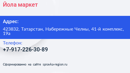 Йола-маркет по адресу 423832, Татарстан, Набережные Челны, 41-й комплекс, 19а в дальнейшем Организация, размещена в следующих категориях: