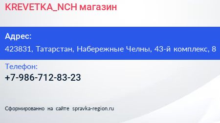 KREVETKA_NCH, магазин по адресу 423831, Татарстан, Набережные Челны, 43-й комплекс, 8 в дальнейшем Организация, размещена в следующих категориях: