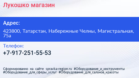 Лукошко, магазин по адресу 423800, Татарстан, Набережные Челны, Магистральная, 75а в дальнейшем Организация, размещена в следующих категориях: