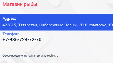 Магазин рыбы по адресу 423815, Татарстан, Набережные Челны, 30-й комплекс, 10а в дальнейшем Организация, размещена в следующих категориях:
