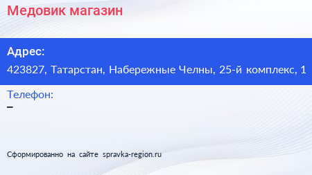 Медовик, магазин по адресу 423827, Татарстан, Набережные Челны, 25-й комплекс, 1 в дальнейшем Организация, размещена в следующих категориях:
