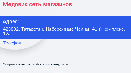 Медовик, сеть магазинов по адресу 423832, Татарстан, Набережные Челны, 41-й комплекс, 19а в дальнейшем Организация, размещена в следующих категориях: