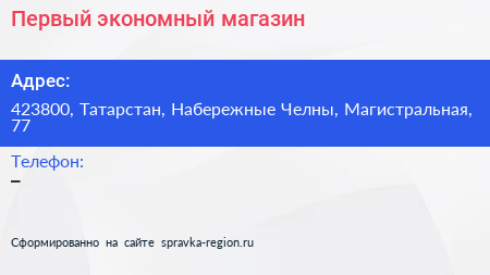 Первый экономный, магазин по адресу 423800, Татарстан, Набережные Челны, Магистральная, 77 в дальнейшем Организация, размещена в следующих категориях: