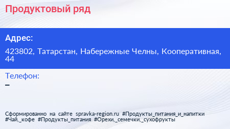 Продуктовый ряд по адресу 423802, Татарстан, Набережные Челны, Кооперативная, 44 в дальнейшем Организация, размещена в следующих категориях:
