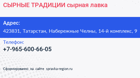 СЫРНЫЕ ТРАДИЦИИ, сырная лавка по адресу 423831, Татарстан, Набережные Челны, 14-й комплекс, 9 в дальнейшем Организация, размещена в следующих категориях: