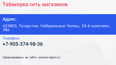 Табакерка, сеть магазинов по адресу 423803, Татарстан, Набережные Челны, 18-й комплекс, 38а в дальнейшем Организация, размещена в следующих категориях: