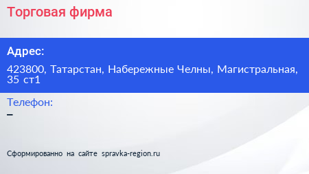 Торговая фирма по адресу 423800, Татарстан, Набережные Челны, Магистральная, 35 ст1 в дальнейшем Организация, размещена в следующих категориях: