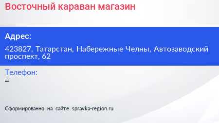 Восточный караван, магазин по адресу 423827, Татарстан, Набережные Челны, Автозаводский проспект, 62 в дальнейшем Организация, размещена в следующих категориях: