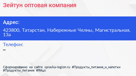 Зейтун, оптовая компания по адресу 423800, Татарстан, Набережные Челны, Магистральная, 13а в дальнейшем Организация, размещена в следующих категориях: