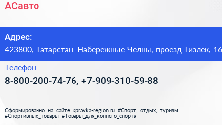АСавто по адресу 423800, Татарстан, Набережные Челны, проезд Тизлек, 16 в дальнейшем Организация, размещена в следующих категориях: