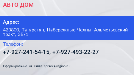 АВТО-ДОМ по адресу 423800, Татарстан, Набережные Челны, Альметьевский тракт, 3Б/1 в дальнейшем Организация, размещена в следующих категориях: