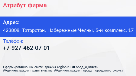 Атрибут, фирма по адресу 423808, Татарстан, Набережные Челны, 5-й комплекс, 17 в дальнейшем Организация, размещена в следующих категориях: