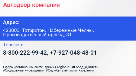 Автодвор, компания по адресу 423800, Татарстан, Набережные Челны, Производственный проезд, 31 в дальнейшем Организация, размещена в следующих категориях:
