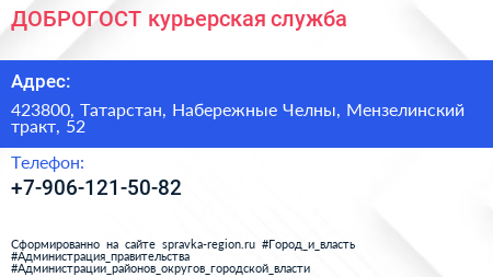 ДОБРОГОСТ, курьерская служба по адресу 423800, Татарстан, Набережные Челны, Мензелинский тракт, 52 в дальнейшем Организация, размещена в следующих категориях: