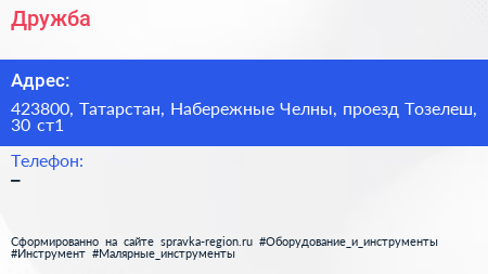 Дружба по адресу 423800, Татарстан, Набережные Челны, проезд Тозелеш, 30 ст1 в дальнейшем Организация, размещена в следующих категориях: